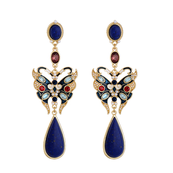 Pendientes largos de lapislázuli con forma de mariposa incrustados, venta al por mayor