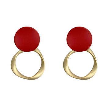Pendientes circulares de moda Qiu Dong con sentido de la moda pintura mate contratada perno estereoscópico hecho de aleación para aniversarios
