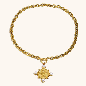 Dreamidea Boho joyería chapado en oro Vintage retrato collar en forma de corazón moneda colgante perla acentos Material de acero inoxidable