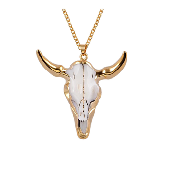 Collar con colgante de calavera de ganado con cabeza de toro chapado en oro Vintage, abalorio religioso cristiano de aleación de moda, cuerno de búfalo 45*47mm